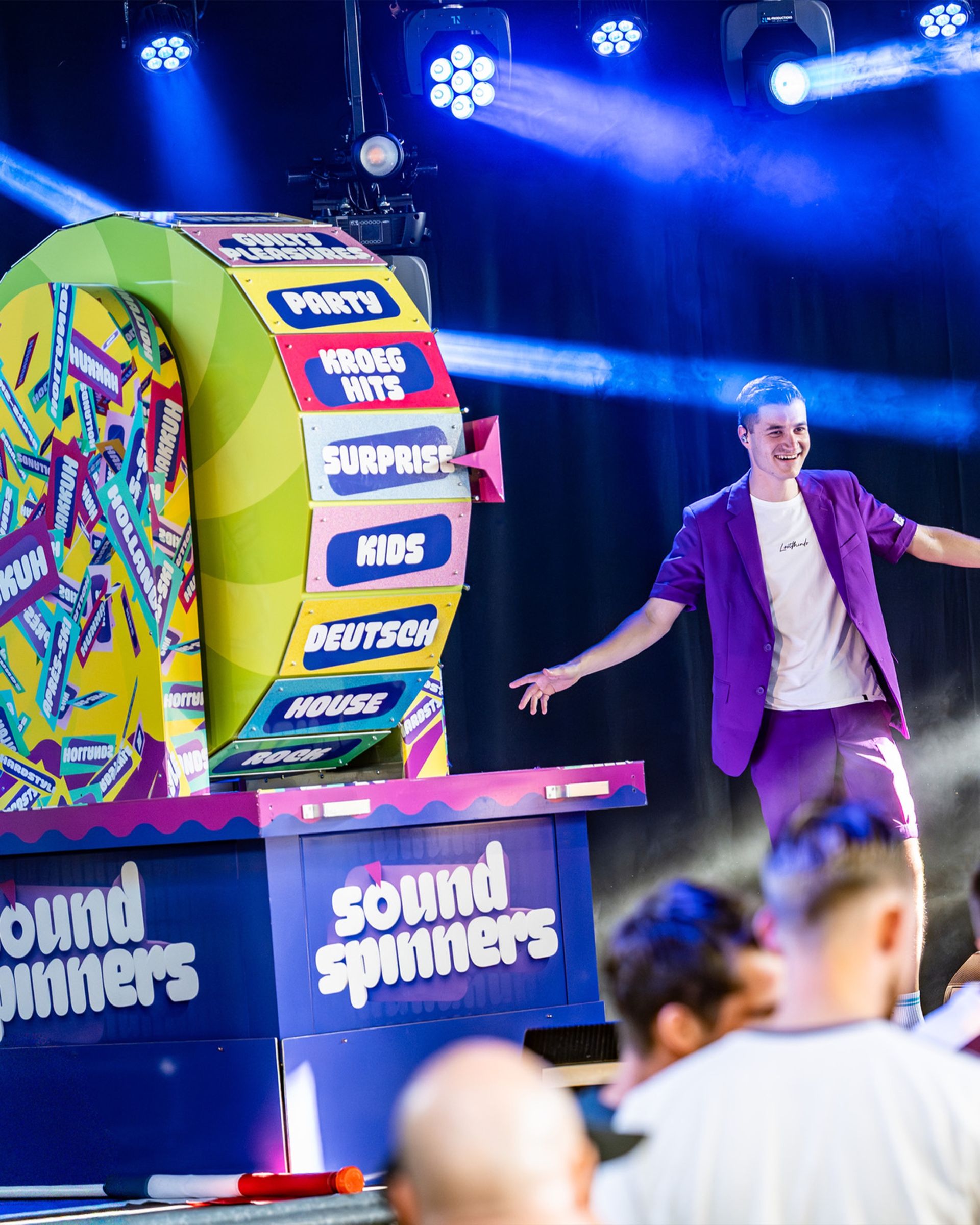 De Soundspinners brengen een show die je nog niet eerder hebt meegemaakt. DJ’s, een rad vol muziekstijlen en een publiek dat steeds opnieuw wordt verrast. Het resultaat? Een explosie van energie, gezelligheid en feest. Dé act voor ieder evenement waar interactie en beleving centraal staan.