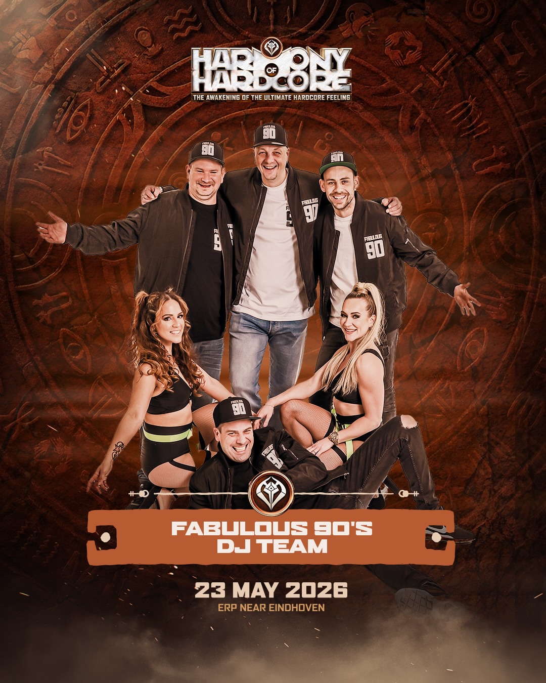Na het succes van vorig jaar keert het Fabulous 90’s DJ Team op 23 mei terug naar het festival Harmony of Hardcore om opnieuw een area te hosten. Daarmee krijgt het publiek wederom een flinke dosis 90’s energie midden in het hardere geweld van het populaire festival. Het Fabulous 90’s DJ Team staat bekend om hun explosieve shows vol nostalgie, entertainment en interactie met het publiek. Tijdens de show staat de muziek vooral in het teken van Happy Hardcore en dance uit de jaren 90.